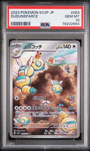 Een mooie Dudunsparce #083 Art Rare uit de Japanse set Pokémon Snow Hazard (SV2P, 2023), professioneel beoordeeld door PSA met de hoogste score: GEM MINT 10.