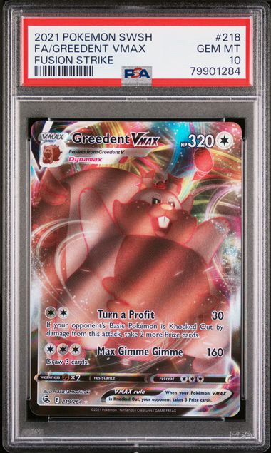 PSA 10 GEM MINT – 2021 Pokémon Sword & Shield Fusion Strike #218 Greedent VMAX