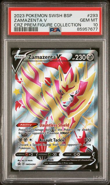 Een krachtige Zamazenta V #293 Black Star Promo uit de Premium Figure Collection (2023), professioneel beoordeeld door PSA met de hoogste score: GEM MINT 10.